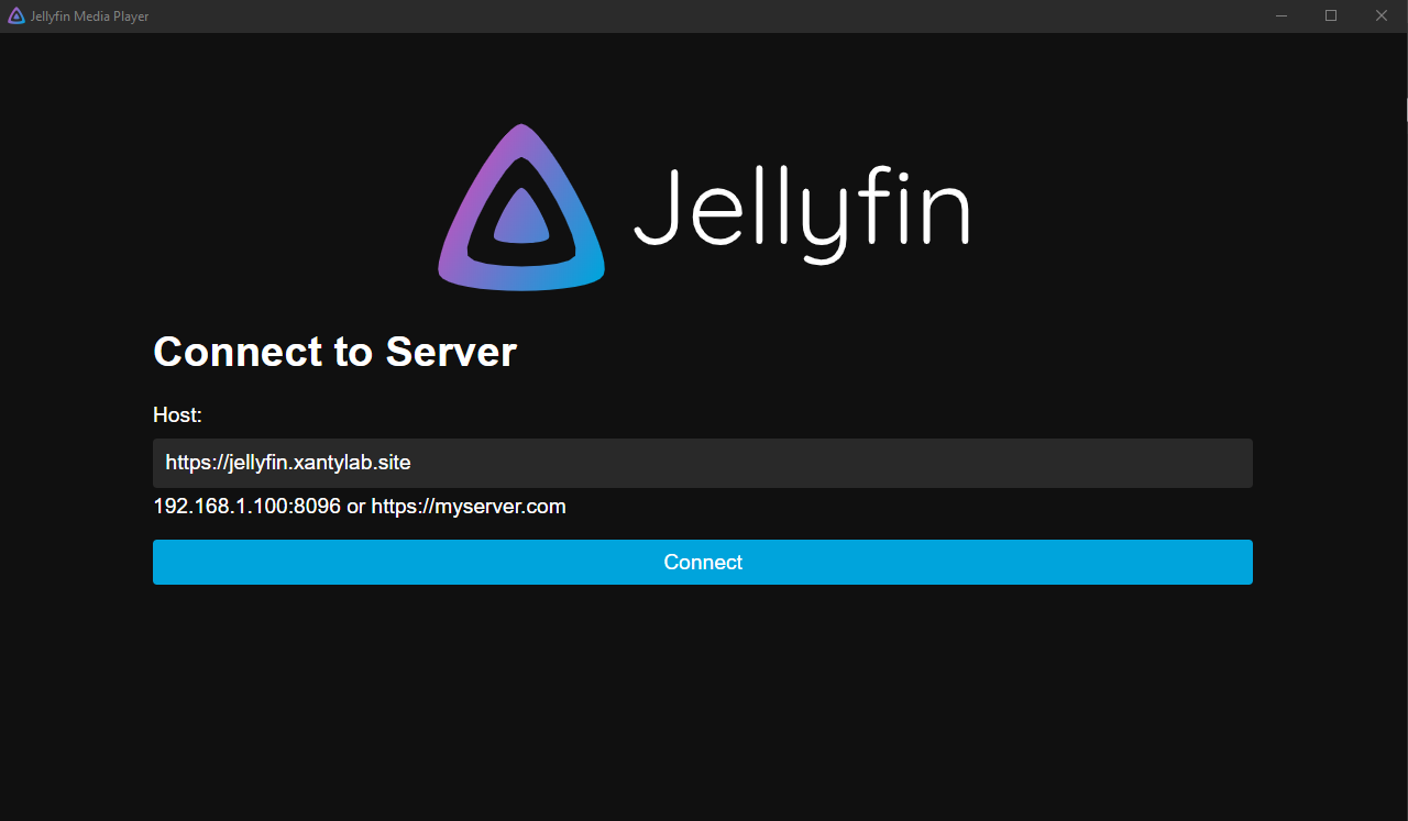 After downloading the jellyfin app on your TV, mobile device, or desktop, you must add the server to connect to and then sign in. To connect the server click "add server" and enter the url "https://jellyfin.xantylab.site"